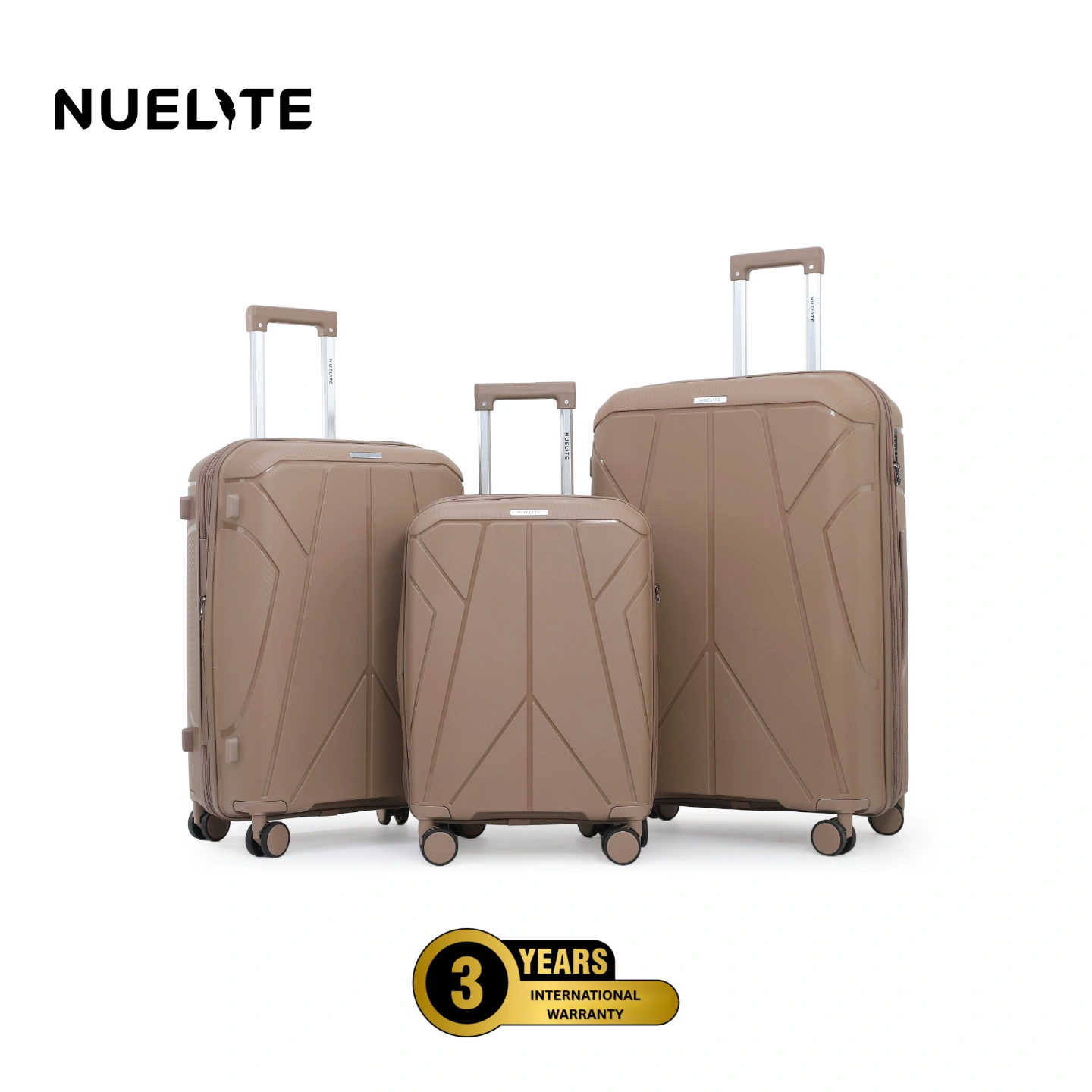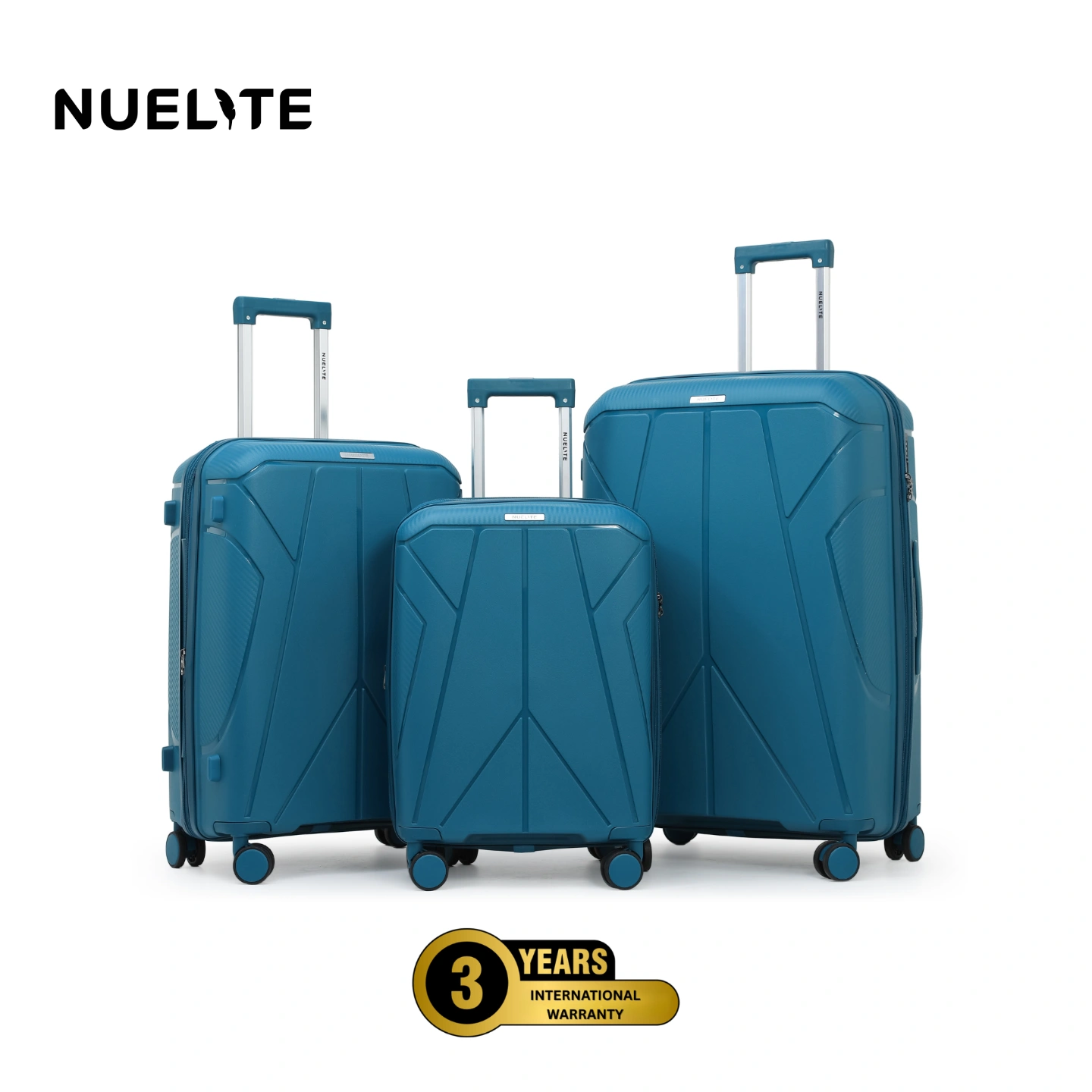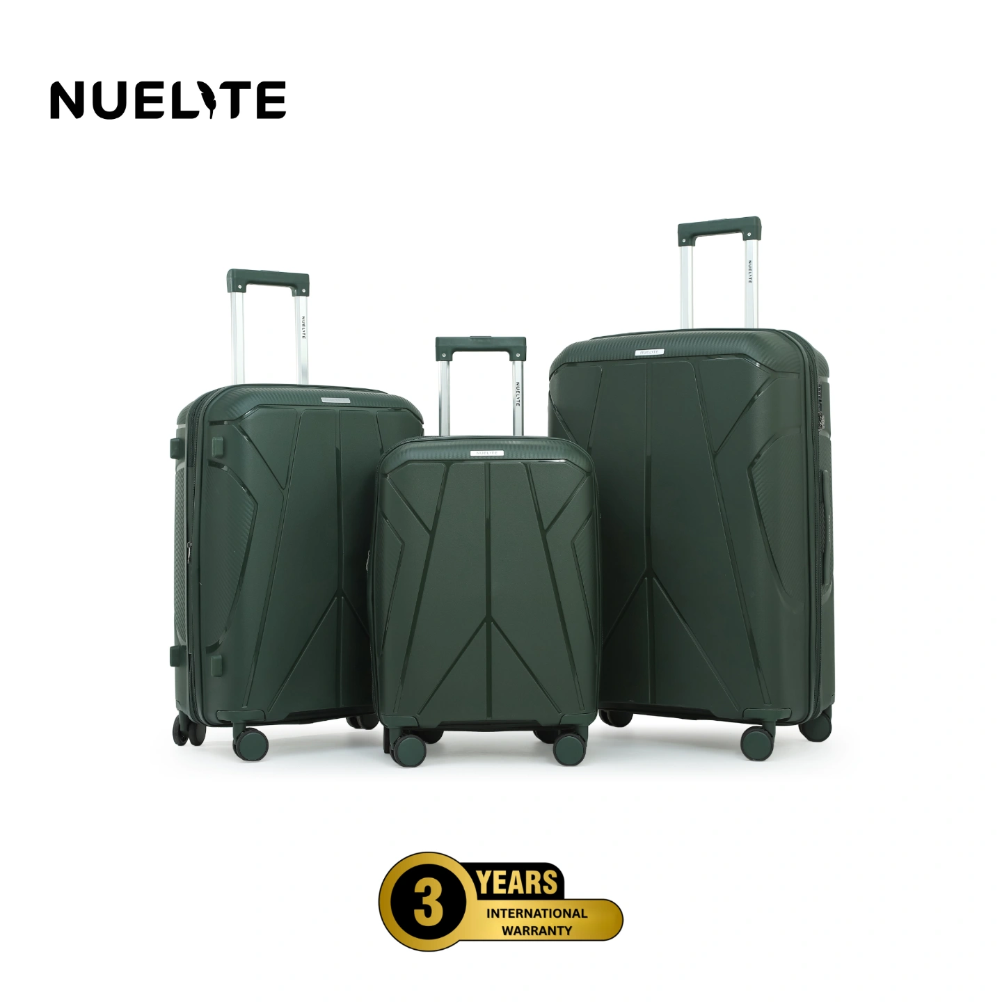 NUELITE Delgado 3-Piece Luggage Set | 8-Wheel Spinner Trolley Bags | TSA Lock, Anti-Theft Zippers, Expandable Hard Shell Polypropylene Suitcases | 20", 24", 28" Inch