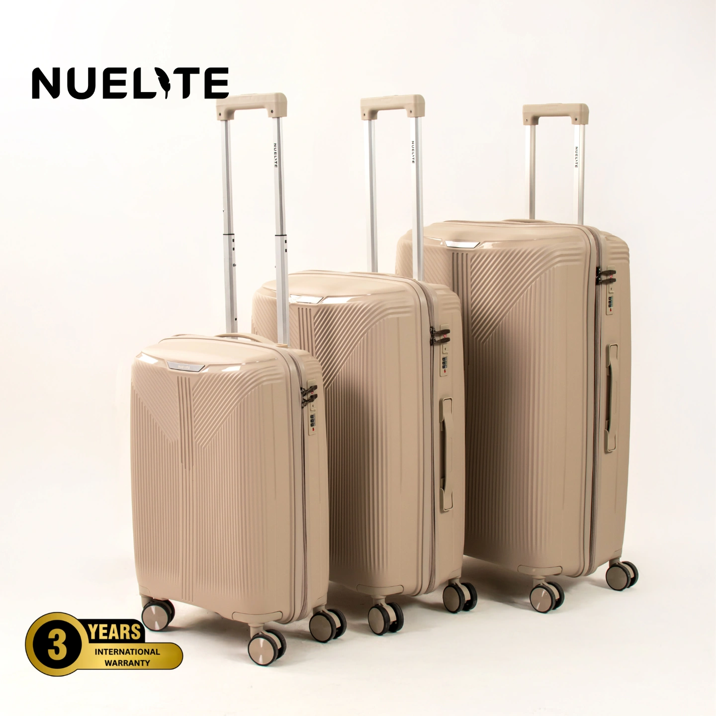 Travel effortlessly with the NUELITE NARITA 3-Piece Luggage Set, designed to cover all your travel needs from short trips to long vacations. The set includes a 20-inch cabin suitcase, a 24-inch check-in suitcase, and a 28-inch check-in suitcase, all crafted from ultra-soft, unbreakable polypropylene for durability and lightweight convenience.