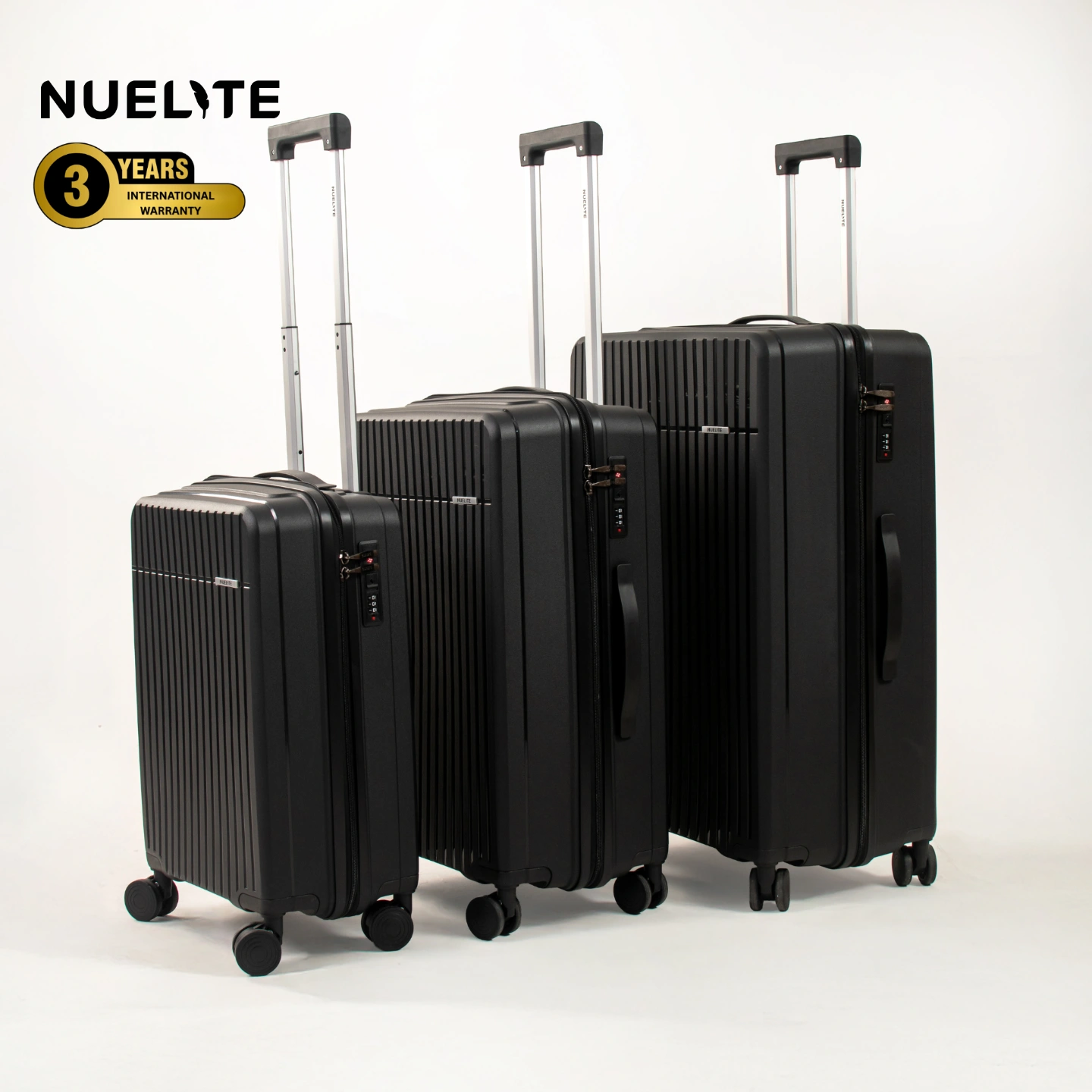Travel effortlessly with the NUELITE NARITA 3-Piece Luggage Set, designed to cover all your travel needs from short trips to long vacations. The set includes a 20-inch cabin suitcase, a 24-inch check-in suitcase, and a 28-inch check-in suitcase, all crafted from ultra-soft, unbreakable polypropylene for durability and lightweight convenience.